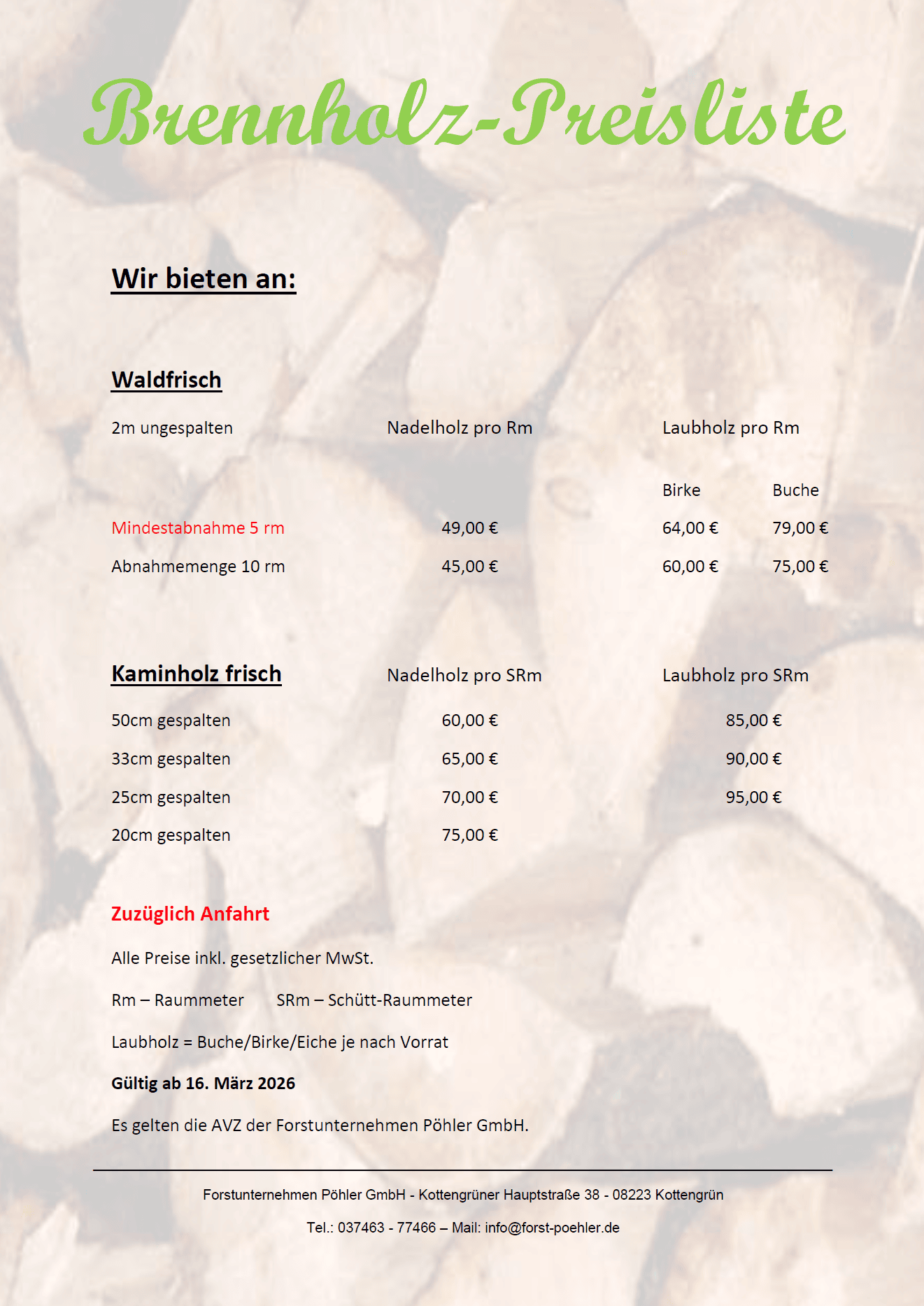 Herzlich willkommen beim Forstunternehmen Pöhler in Kottengrün
